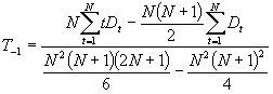 Values for interception L-1 and slope T-1 are initialized by the following formulas: