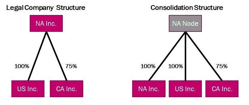 to a master company. The consolidated group is represented by a node in a consolidation structure, typically the