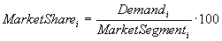 品目のマーケット シェアは、品目の需要と調整済予測、およびマーケット セグメントの需要と調整済予測の間の割合として計算されます。品目のマーケット シェアを変更すると、品目の調整済予測にも影響します。これらの調整は予測期間内でのみ許可されます。